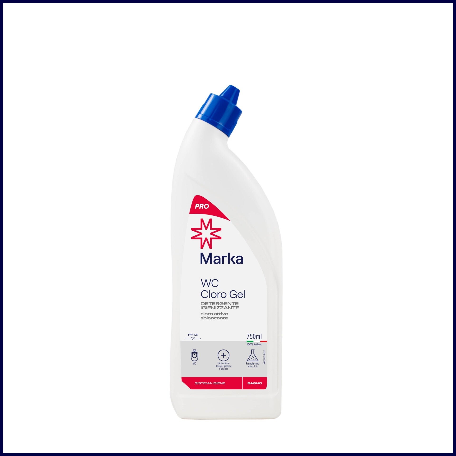 Detergente gel igienizzante a base di cloro attivo, ideale per la pulizia del WC. Grazie alla sinergia tra il tensioattivo di origine vegetale e la soda, garantisce una pulizia impeccabile, assicurando un alto livello di igiene. La sua speciale formula è sviluppata con una materia prima che crea un film protettivo sulle superfici trattate, evitando la rideposizione dello sporco. Potere sbiancante.